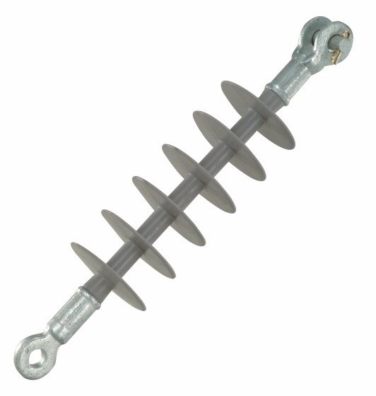 Isoladores poliméricos de ancoragem e suspensão tensão nominal 35 kv, norma NBR 15122, fabricados a partir de um bastão (alma) de fibras de vidro, o qual é fixado nas ferragens de conexão, e posteriormente aplicado sobre este conjunto o revestimento isolante em borracha de silicone.